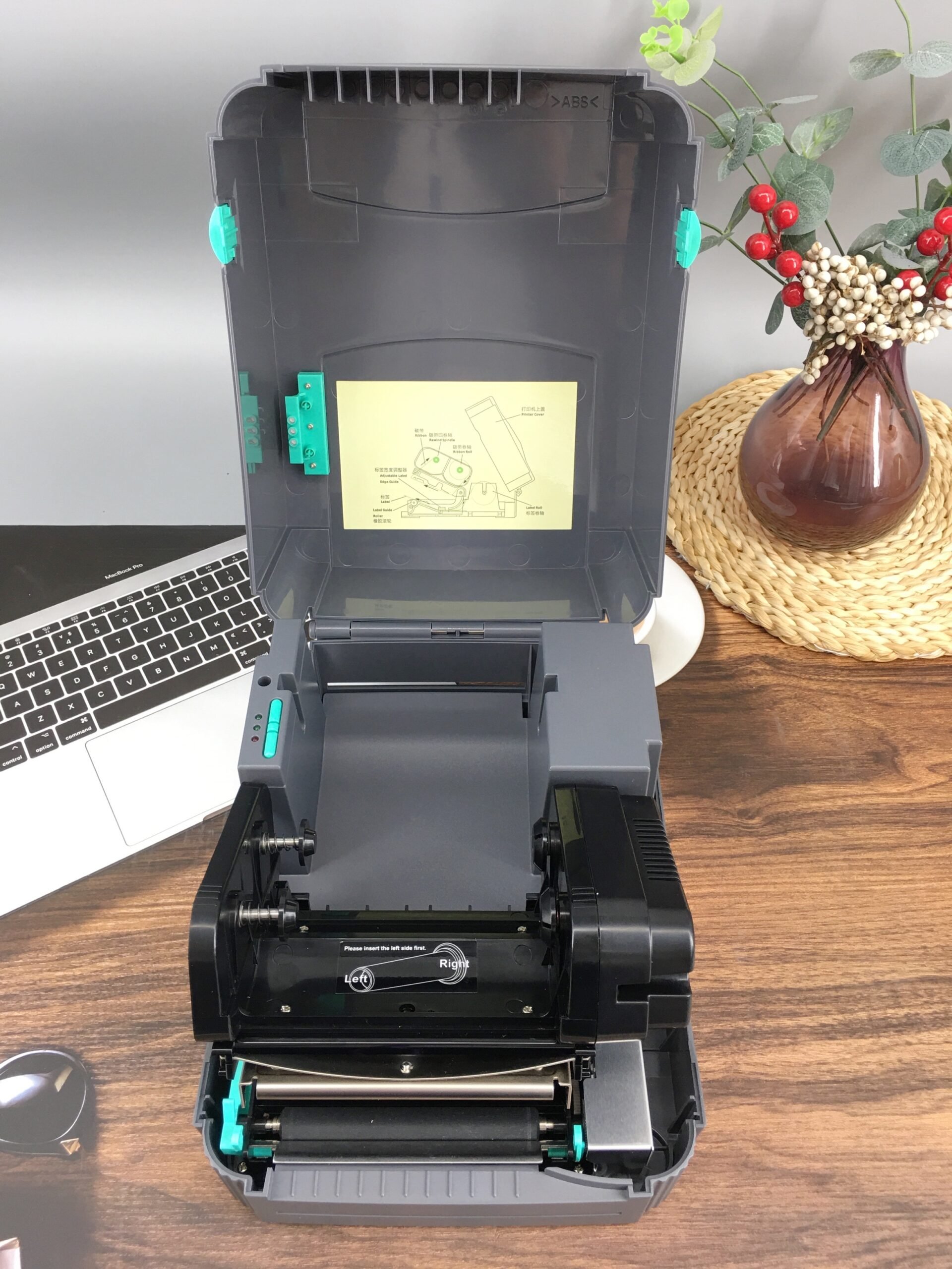 This label printer features easy media loading, a clear window to monitor ribbon status, and USB connectivity for quick setup. The TTP-244 Pro handles various label widths and types, making it a cost-effective choice for small businesses, warehouses, and offices needing consistent, high-quality printing daily.